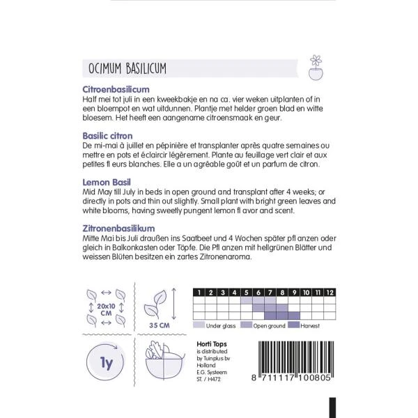 Een mooi éénjarig plantje met heldergroen blad en een witte bloesem met een aangename citroensmaak en -geur.